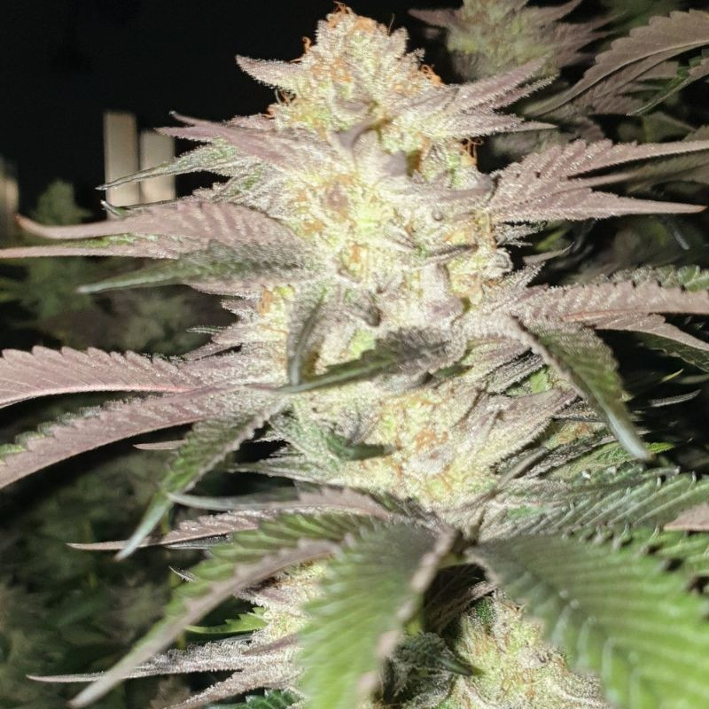 Dankzij zorgvuldig geselecteerde genen onderscheidt Rainbow Road zich door een snelle vegetatieve start en een uitzonderlijke dynamiek na de overgang naar bloei. De plant kan in een verrassend tempo omhoog schieten, waardoor ze bij indoor teelt vaak hoogtecontrole of lichte training vereist, vooral in kleinere tenten. Tijdens de bloeifase bouwt ze snel massieve, zware toppen op die bedekt zijn met een sterrenhemel van glanzende hars. Trichomen verschijnen dicht opeengepakt al in een vroeg stadium van de bloei en domineren het bloemoppervlak steeds intenser met elke week.